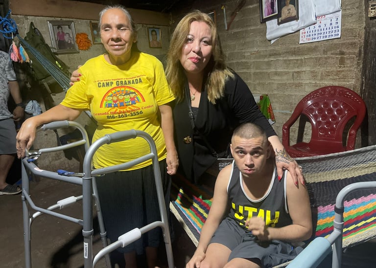 This is Conchita, a mother of a family with a disability. She was the mother of whose husband and son's life was taken from them. Her only son drank the wrong medication, which caused him to lose his speech and the ability to walk. CLR Hollywood Foundation donated a walker for Conchita and a wheelchair for her son, in addition to a small sum of money.